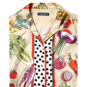 Dolce & Gabbana Multicolor Vegetables Silk Long Sleeves Top