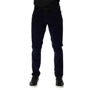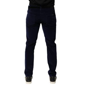 Dolce & Gabbana Navy Blue Cotton Tapered Formal Trouser Pants