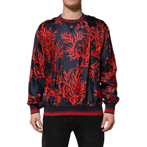 Dolce & Gabbana Navy Red Silk Coral Print Pullover Sweater