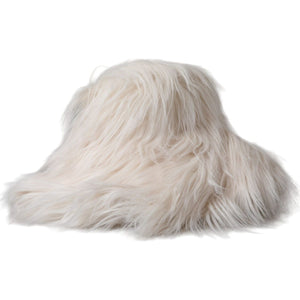 قبعة دلو نسائية من الفرو الأكريليكي باللون الأبيض من دولتشي آند غابانا