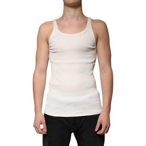 Dolce & Gabbana Off White Cotton Sleeveless Round Neck Tank T-shirt