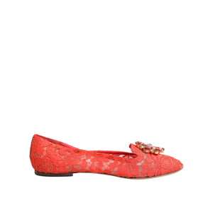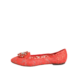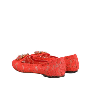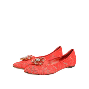 Dolce & Gabbana Orange Lace Crystal Ballet Flats Loafers Shoes