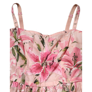 Dolce & Gabbana Pink Cotton Floral Pleated Sleeveless Dress