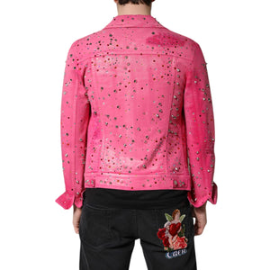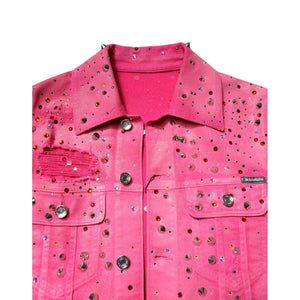 Dolce & Gabbana Pink Crystal Embellished Cotton Denim Jacket
