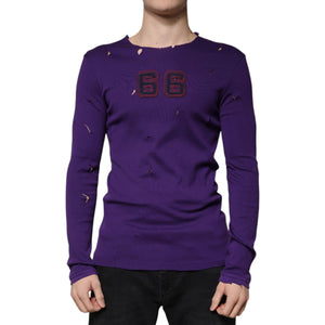 Dolce & Gabbana Purple Cotton Round Neck Pullover Men Sweater