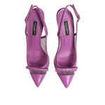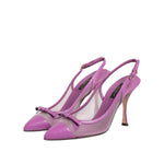 Dolce & Gabbana Purple Leather Mesh High Heels Slingback Shoes