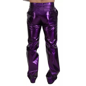 Dolce & Gabbana Purple Metallic Nylon Straight Trouser Pants