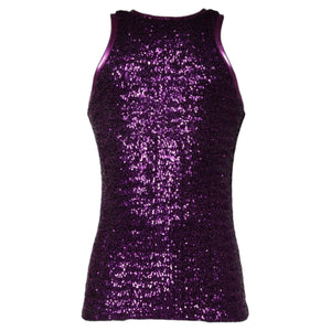 Dolce & Gabbana Purple Sequin Round Neck Sleeveless T-shirt
