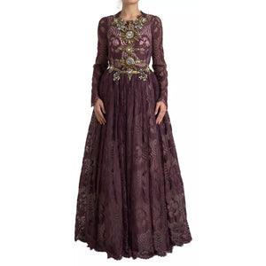 Dolce & Gabbana Purple Viscose Crystal A-Line Gown Dress