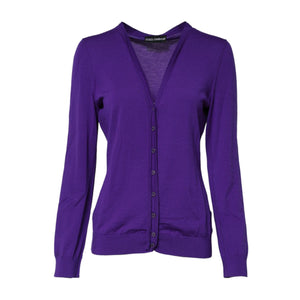 Dolce & Gabbana Purple Wool Knit V-neck Cardigan Sweater