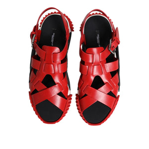 Dolce & Gabbana Red Black Leather Ankle Strap Sandals Shoes