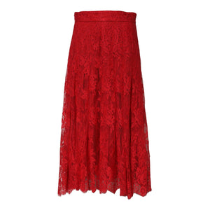 Dolce & Gabbana Red Cotton Floral Lace A-line Long Maxi Skirt