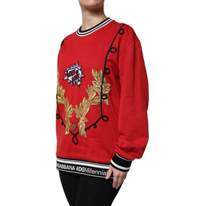 Dolce & Gabbana Red Cotton Queen Sequined Pullover Sweater