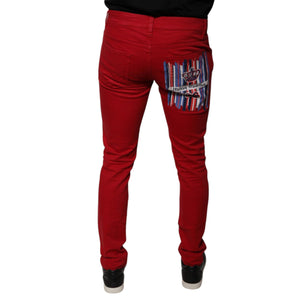 Dolce & Gabbana Red Crown Logo Cotton Skinny Denim Jeans