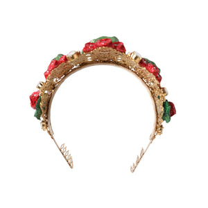 Dolce & Gabbana Red Floral Flowerpot Crystal Gold Crown Tiara Headband