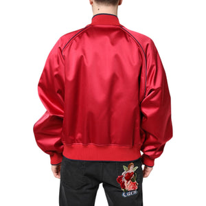 Dolce & Gabbana Red Floral Patch Full Zip Men Bomber Jacket