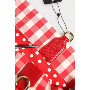 Gorgeous brand new, 100% Authentic Dolce & Gabbana red checkered embellished shopping tote cotton bag I LOVE PIZZA rhinestone-embellished tote bag.