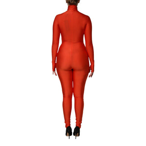 Dolce & Gabbana Red Nylon Turtleneck Bodycon Jumpsuit Dress