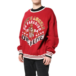 Dolce & Gabbana Red Sequin Knit Pullover Sweatshirt Sweater
