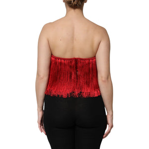 Dolce & Gabbana Red Silk Strapless Fringe Crop Tube Top
