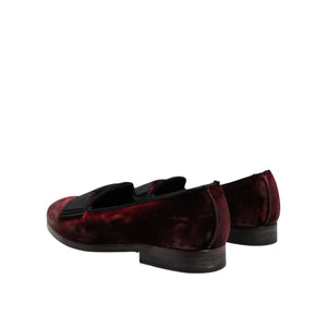 Dolce & Gabbana Red Velvet Men Slip On Loafers Dress Shoes