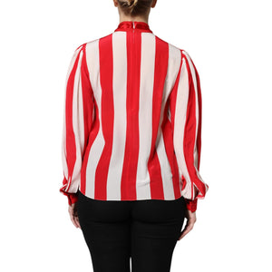 Dolce & Gabbana Red White Stripes Ascot Collar Blouse Top