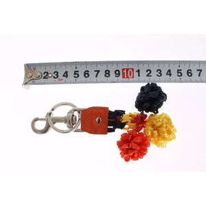 Dolce & Gabbana Red Yellow Raffia Leather Clasp Finder Keyring Keychain