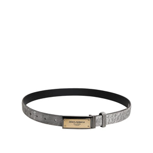 Dolce & Gabbana Silver Classic Gold Logo Plaque Buckle Belt