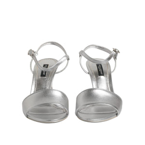 Dolce & Gabbana Silver Leather DG Heels Keira Sandals Shoes