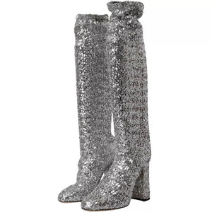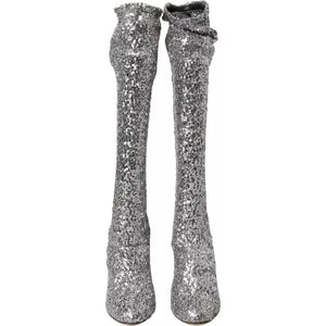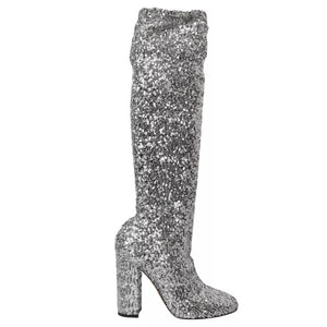 Dolce & Gabbana Silver Sequined High Boots Stretch Shoes