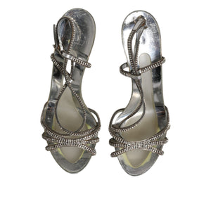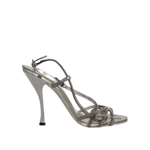Dolce & Gabbana Silver Strass Ankle Strap Heels Sandals Shoes