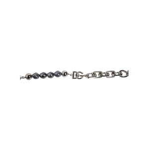 Dolce & Gabbana Silver Tone Chain Lobster Clasp Logo Gray Pearls Bracelet