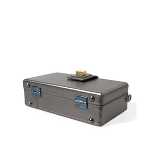 Dolce & Gabbana Steel Gray Leather Box Shape Shoulder Gold DG Logo Plaque Bag
