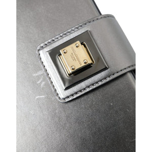 Gorgeous preowned, 100% Authentic Dolce & Gabbana shoulder bag in a striking steel gray tone. Crafted from premium leather, the structured box-style design is accented with polished gold-tone hardware and engraved logo push-lock closure for a refined touch.