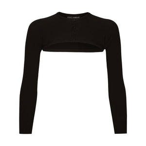 KIM DOLCE&GABBANA cropped button-fastening cardigan from DOLCE & GABBANA featuring black, stretch-design, round neck, button fastening and long sleeves. Cropped cardigan Size and Fit - This piece fits true to size. We recommend you get your regular size. Model is 1,75m / 5ft 8in wearing size 40 (IT)