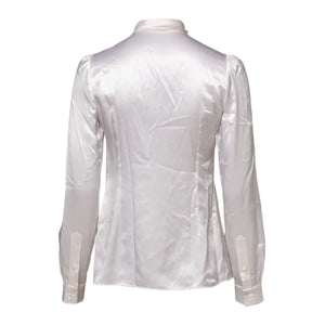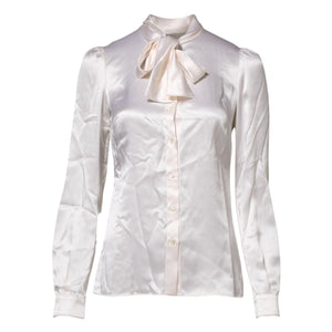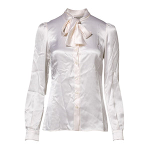 Dolce & Gabbana White Ascot Collar Long Sleeve Blouse Top
