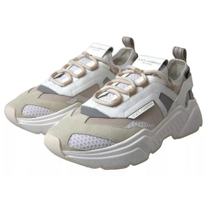 Dolce & Gabbana White Beige Leather Sport DAYMASTER Shoes Sneakers