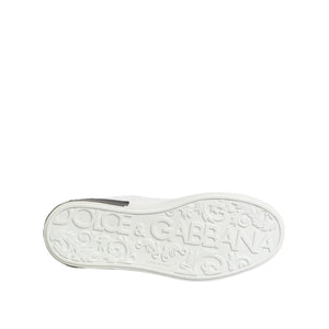 Dolce & Gabbana White Black Leather Portofino Sneaker Shoes