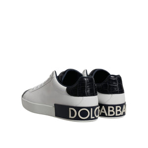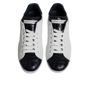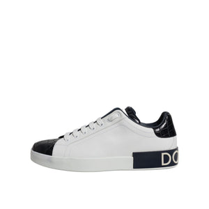 Dolce & Gabbana White Black Leather Portofino Sneakers Shoes