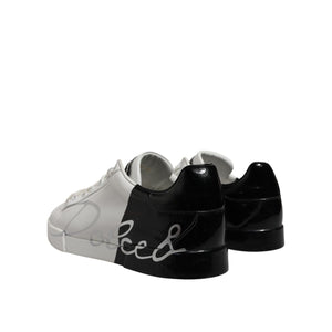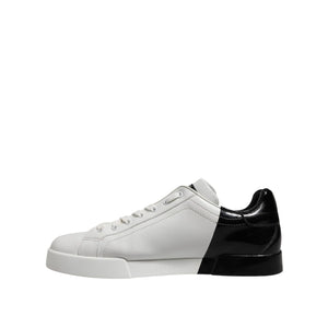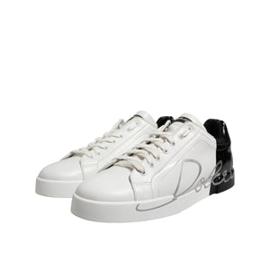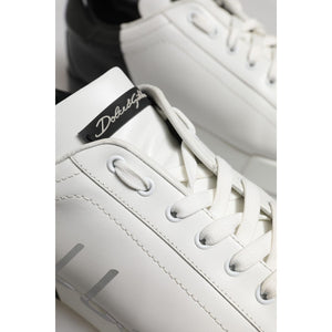 Dolce & Gabbana White Black Logo Low Top Leather Sneakers Shoes