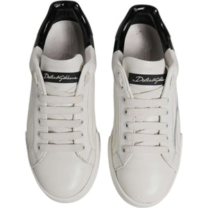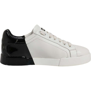 Dolce & Gabbana White Black Logo Portofino Men Sneaker Shoes
