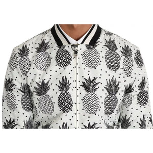 Dolce & Gabbana White Black Pineapple Bomber Coat Jacket