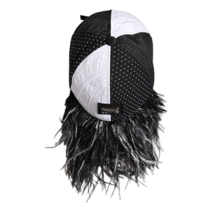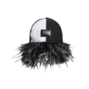 Dolce & Gabbana White Black Polka Dot Feathers Baseball Cap