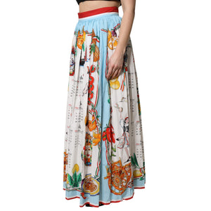 Dolce & Gabbana White Calendar Print Cotton Gathered Maxi Skirt