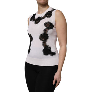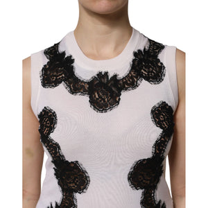 Dolce & Gabbana White Cashmere Floral Lace Detailing Tank Top