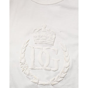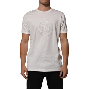 Dolce & Gabbana White Cotton DG Crown Embossed Men T-shirt