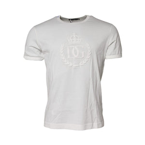 Dolce & Gabbana White Cotton DG Crown Embossed T-shirt