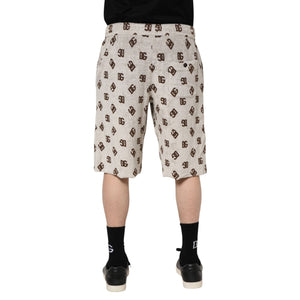 Dolce & Gabbana White Cotton DG Mania Print Men Bermuda Shorts