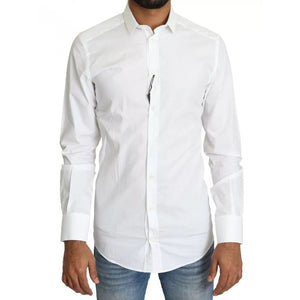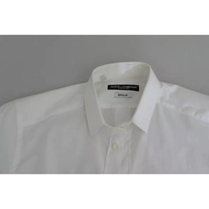 Dolce & Gabbana White Cotton Formal Dress Top GOLD Shirt