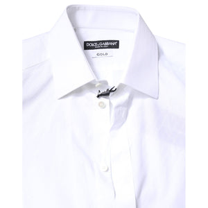 Dolce & Gabbana White Cotton GOLD Dress Formal Collared Shirt